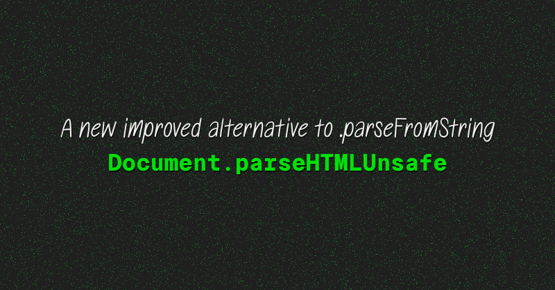 Document.parseHTMLUnsafe is the new improved .parseFromString